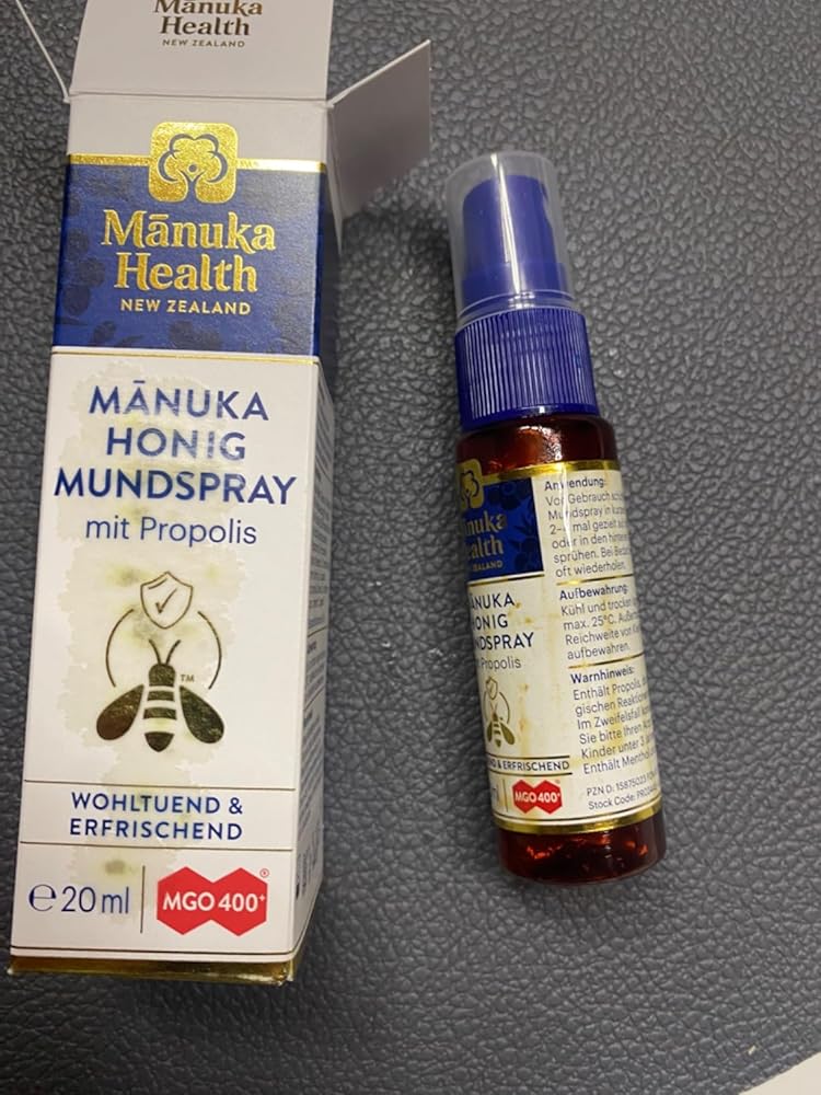 Das neue Mundspray von Manuka Health enthält besten MGO 4OO+ Manuka Honig und neuseeländische Propolis BIO3O™ mit hoher Konzentration an BlOflavonoiden (mind. 3Omg/g). Wertvolle Öle von Pfefferminze, Anis, Myrrhe und Nelke ergänzen die Formel perfekt und sorgen so für eine effektive Mundhygiene durch 1OO% natürlich wirksame lnhaltsstoffe. Die Eigenschaften, Qualität und Stärke von Propolis sind je nach Herkunftsland unterschiedlich. Neuseeländische Propolis ist besonders leistungsstark, da die dortigen Pflanzen aufgrund der starken UV-Einstrahlung und der einzigartigen Umweltbedingungen einen sehr hohen Gehalt an bioaktiven Schutzsubstanzen ausbilden. Wir verwenden ausschließlich Propolis aus Neuseeland.